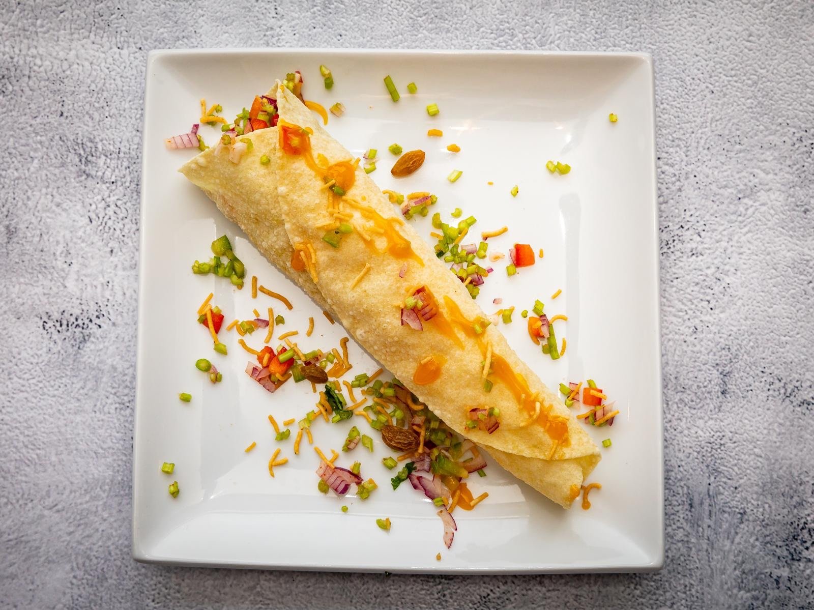 1 stk. stor krydret chips med løg, tomat, agurk, koriander og citrus. Serveres med mynte- og mangosauce.