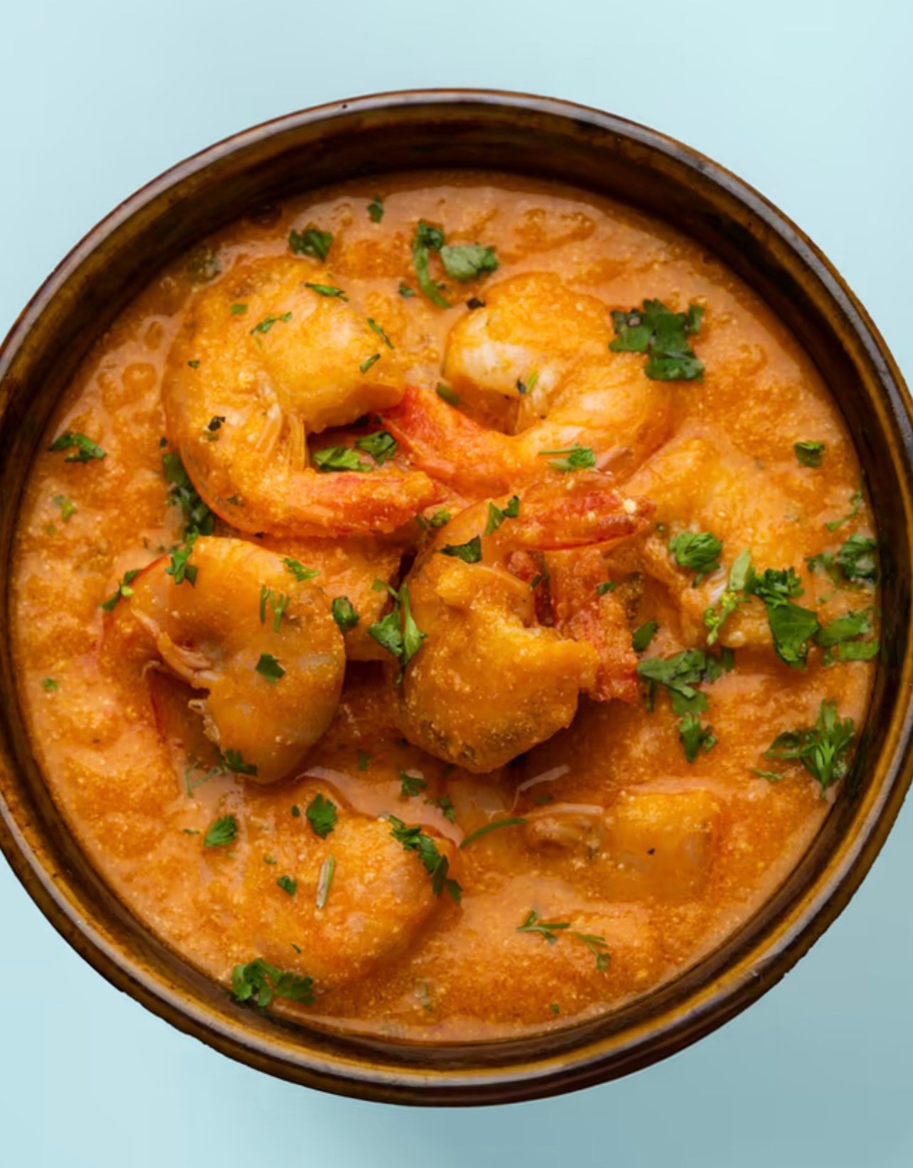 Kongerejer tilberedt i en cremet sauce med tomat og kokos.