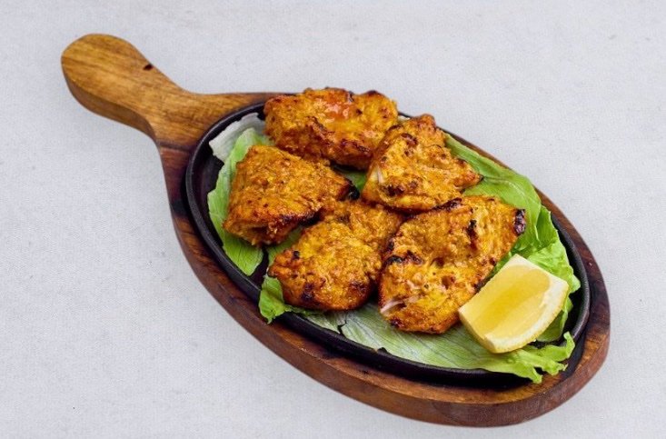 Kyllingelår grillet med indiske krydderier. Serveres med salat.